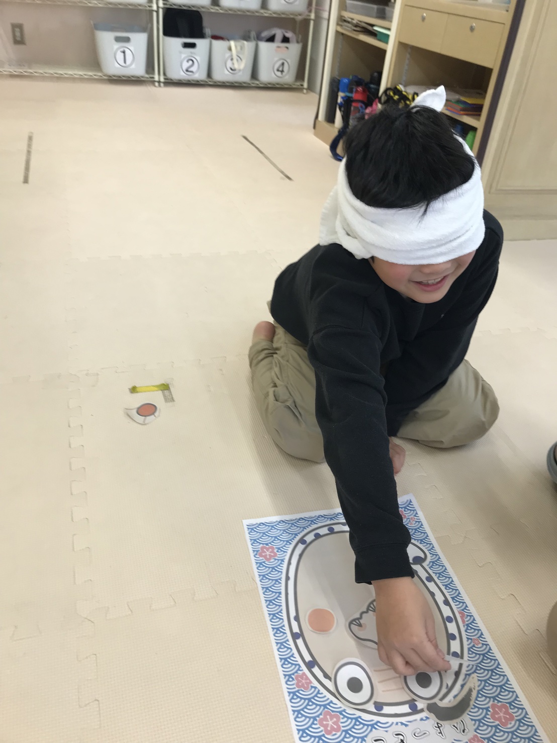 目隠しをして行う福笑いです。