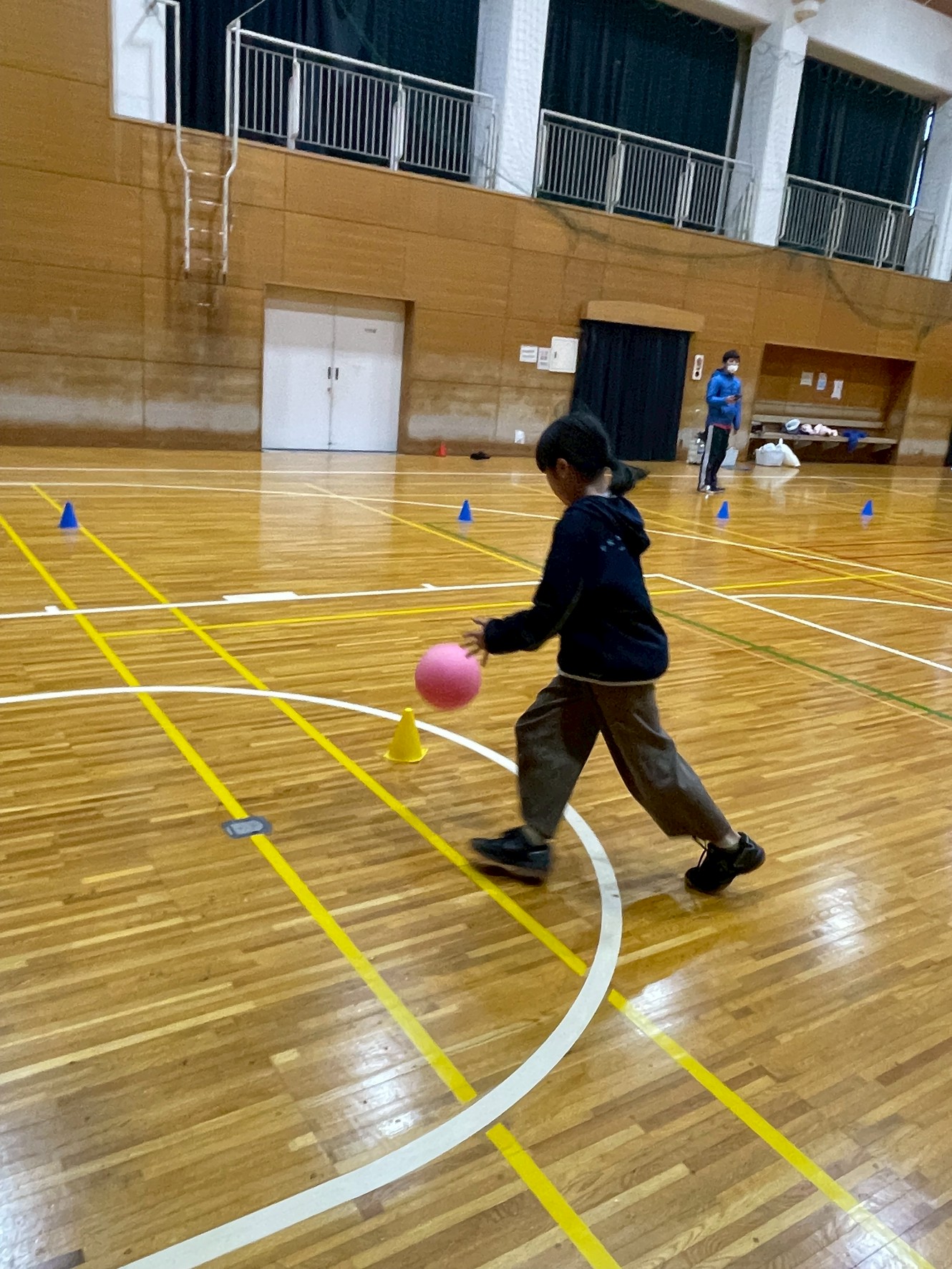 ジグザグドリブルでチャレンジ!体育館で元気いっぱい(^^)